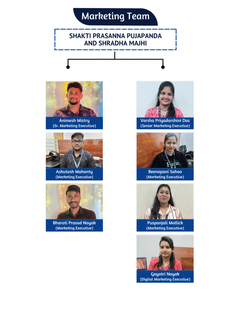 Meet Our Team Jyotirmayee Ray (HR) Chakradhar Sahoo (Civil Engineer) Geetanjali Sahoo (Senior Accountant) Shradha Majhi (Marketing Manager) Shakti Prasanna Pujapanda (Sr. Sales Manager)